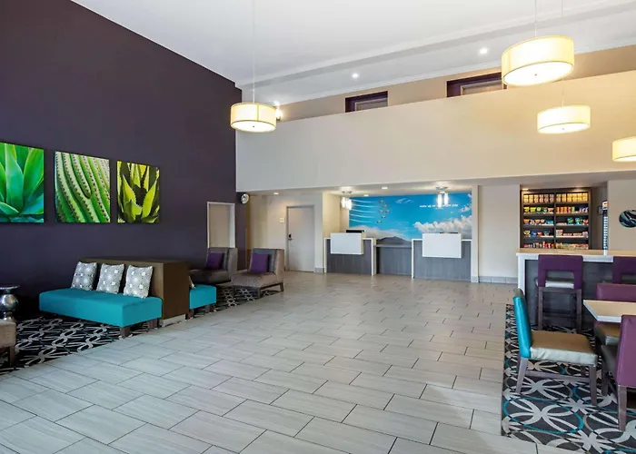 La Quinta Inn & Suites offers a comfortable stay with modern amenities, including a 24-hour open indoor pool and hot tub. Known for its strategic location close to Las Vegas Motor Speedway, guests enjoy a fitness center as well as complimentary daily breakfast. The hotel is also pet-friendly.